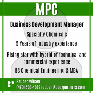 Our team continues to grow! We are excited to welcome Robbie Villemarette. He is joining our Advanced Materials practice as a Search Executive. Robbie will bring valuable insights to recruiting with his knowledge and experience coming directly from the industry. Contact Robbie to see how he can help take the next step in your career or add valuable talent to your team.